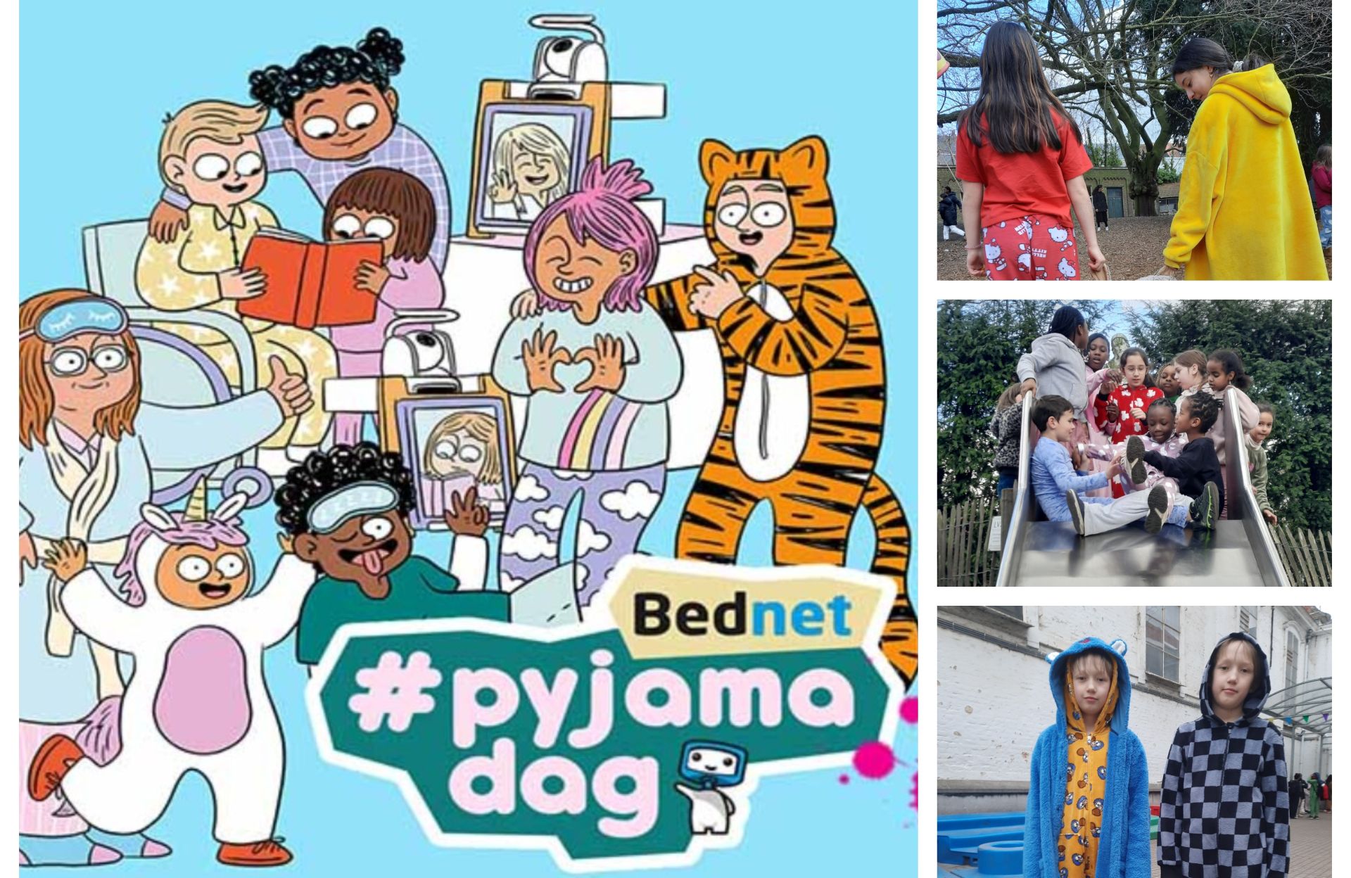 Vandaag deden we met de volledige school mee met de pyjamadag van Bednet.